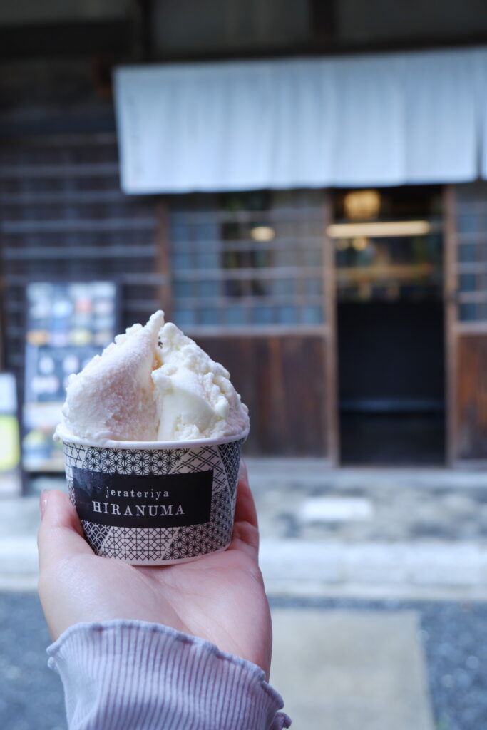 古民家ひらぬまは自家製ジェラートも名物。