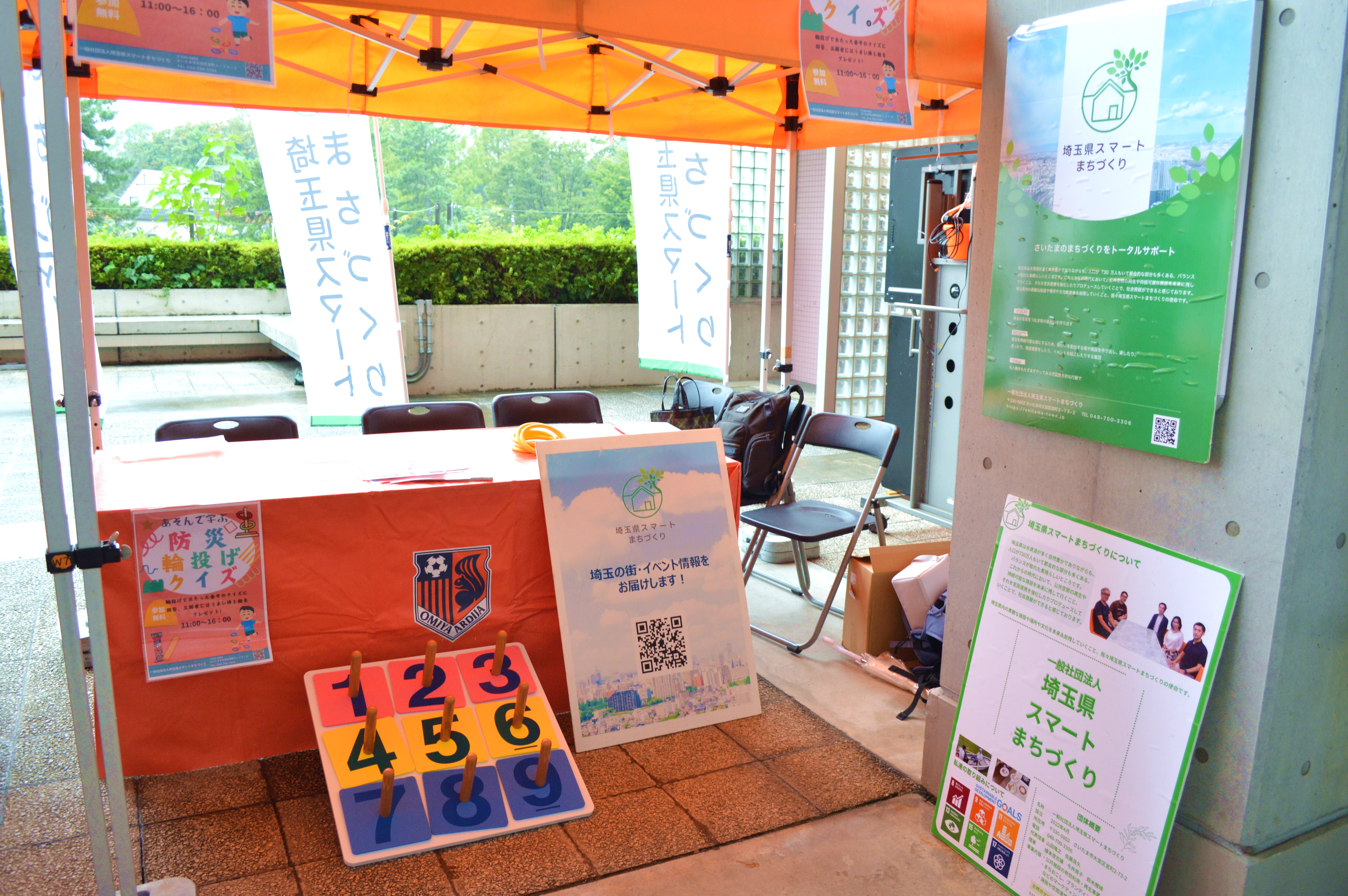 埼玉県スマートまちづくりは企画として参加させていただき、ブースでは「防災輪投げクイズ」を出展いたしました。