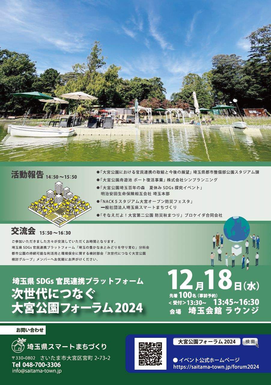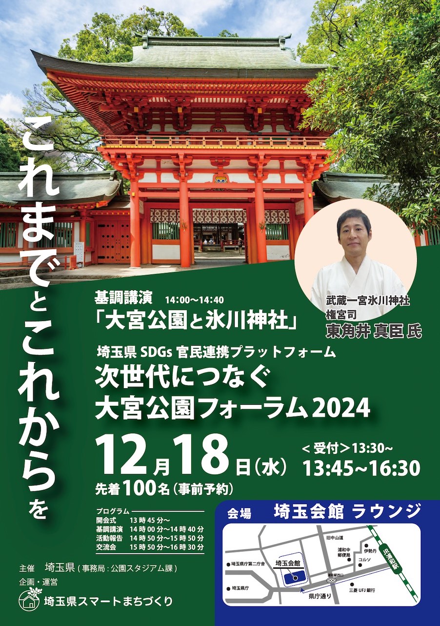 2024年12月18日(水)埼玉会館ラウンジにて、埼玉県SDGs官民連携プラットフォーム「次世代につなぐ大宮公園フォーラム2024」が開催されます。