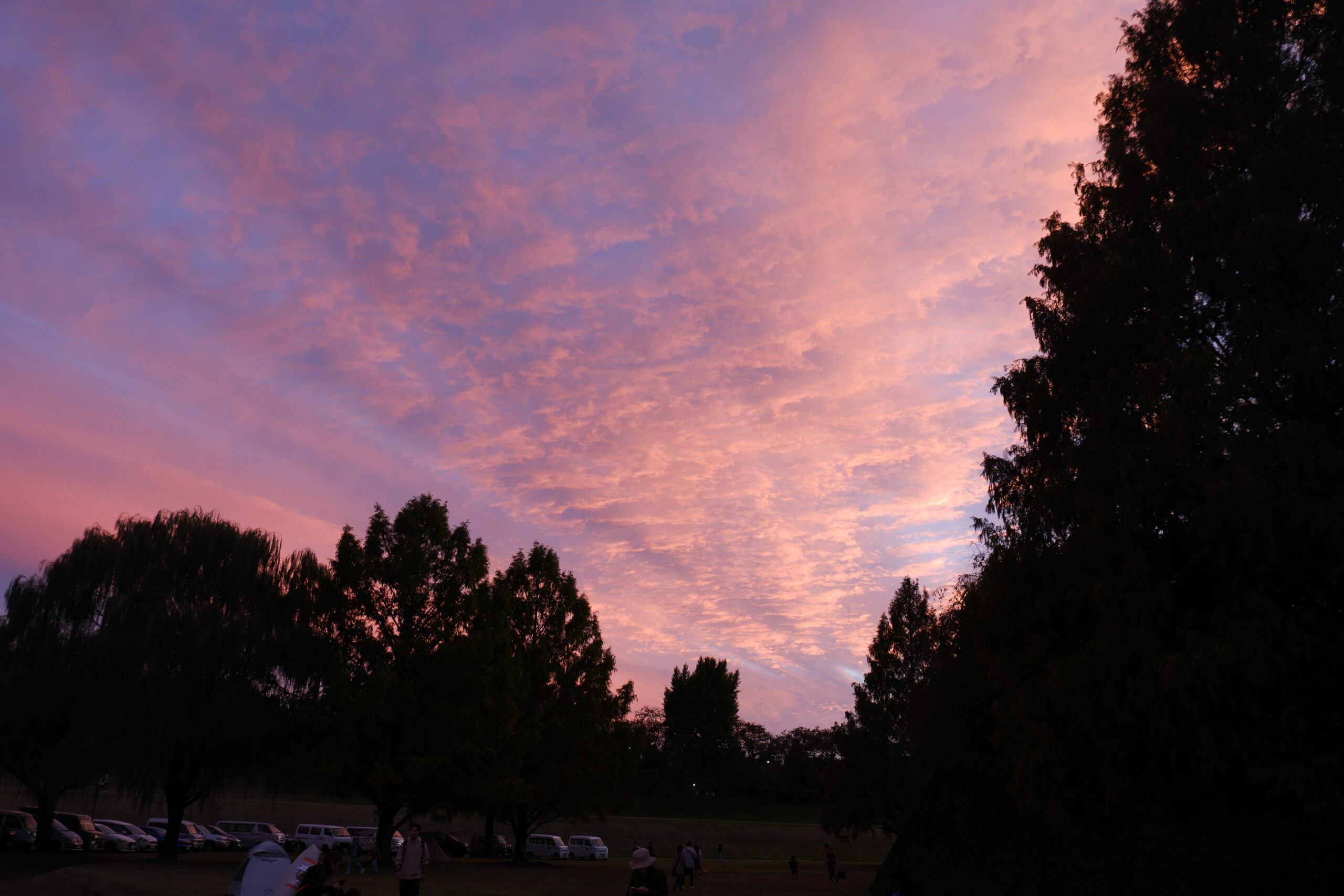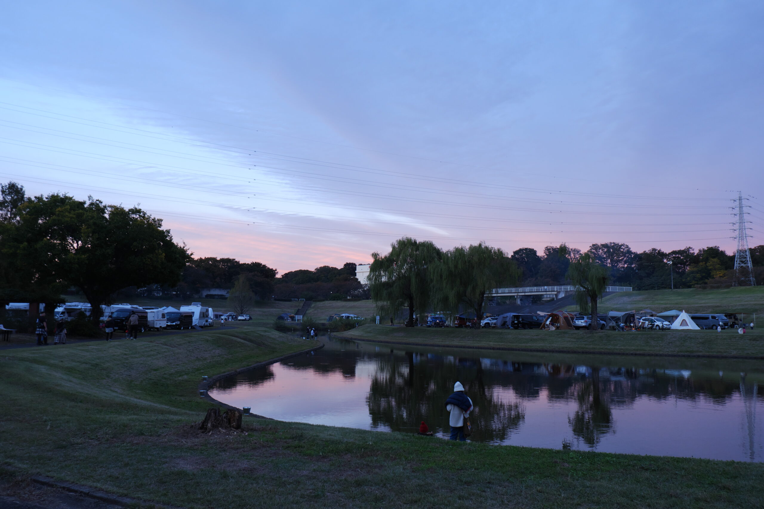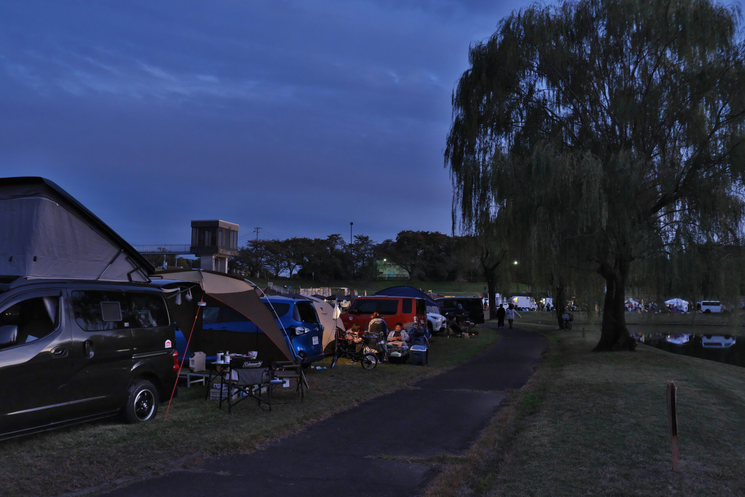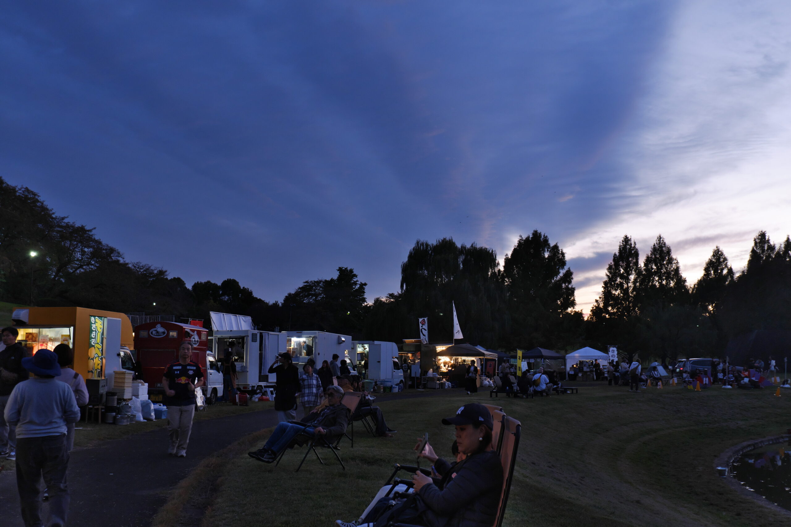 夕方になると、公園内は少しずつ夕焼け色に染まり、参加者の皆さんもそれぞれの時間をゆったりと過ごしていました。
