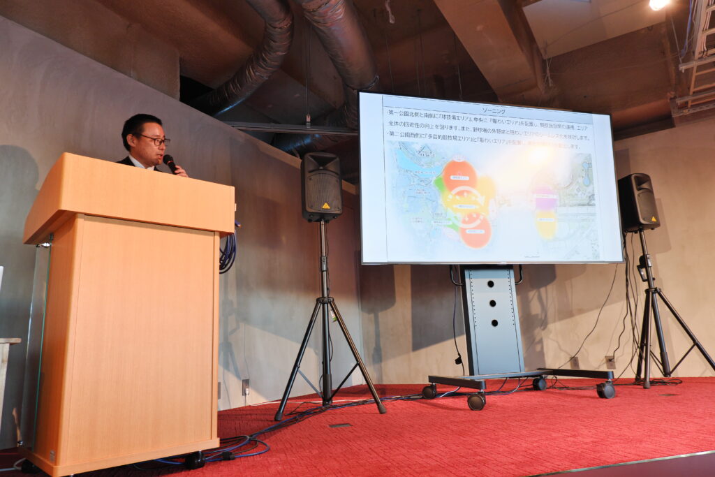 埼玉県都市整備部公園スタジアム課 松村 友宏様より、大宮スーパー・ボールパーク構想に関する詳細なご説明を賜りました。
