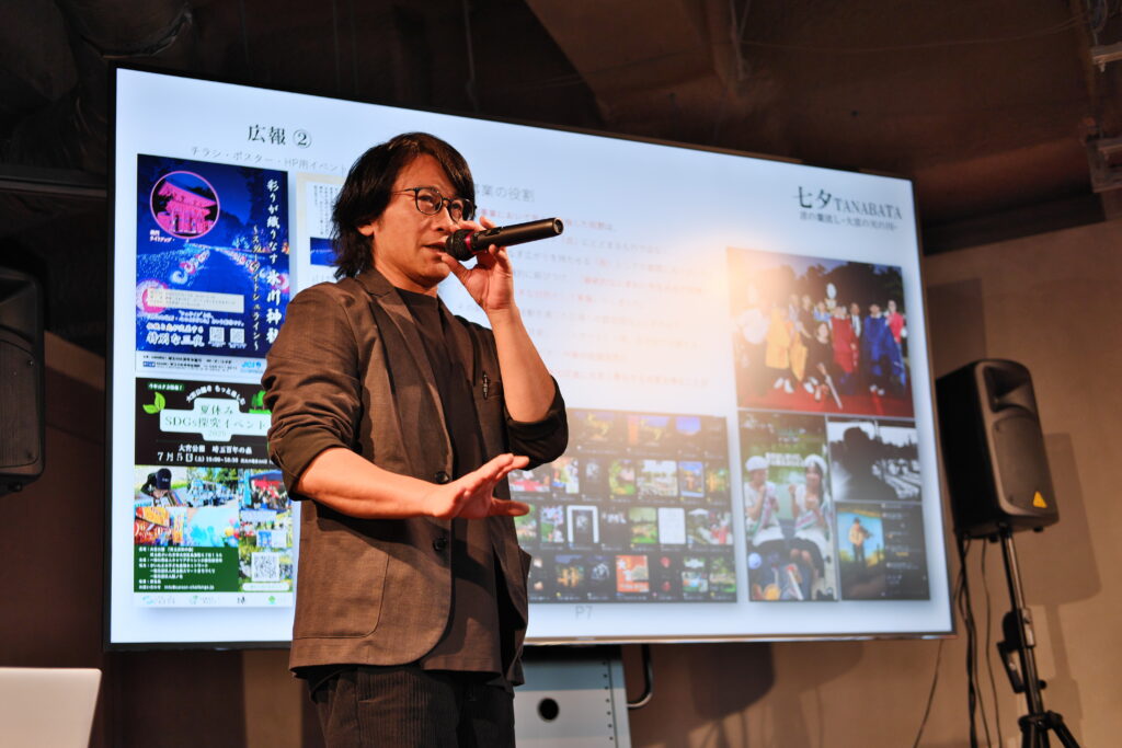 「株式会社シンプランニング」五⼗嵐伸幸様は、今年度の「七夕言の葉流し」が、多くの短冊と来場者を集め、地域の文化的な交流と高い満足度をもたらした成功を報告し、来年度はイベントのブランド化と継続的な発展を目指す展望を述べられました。